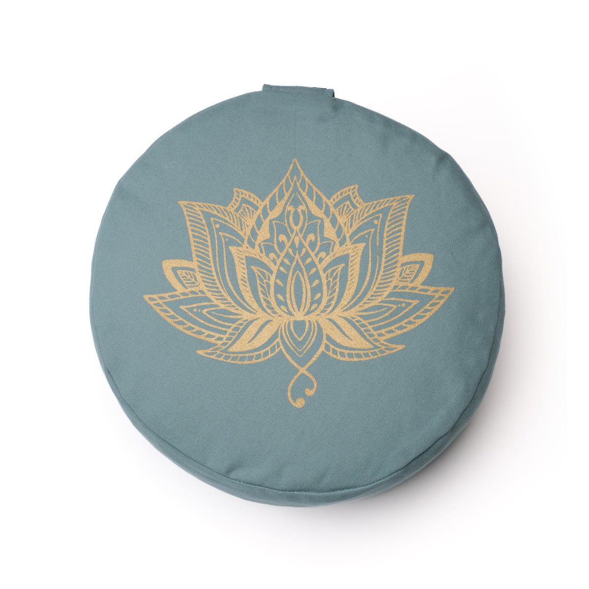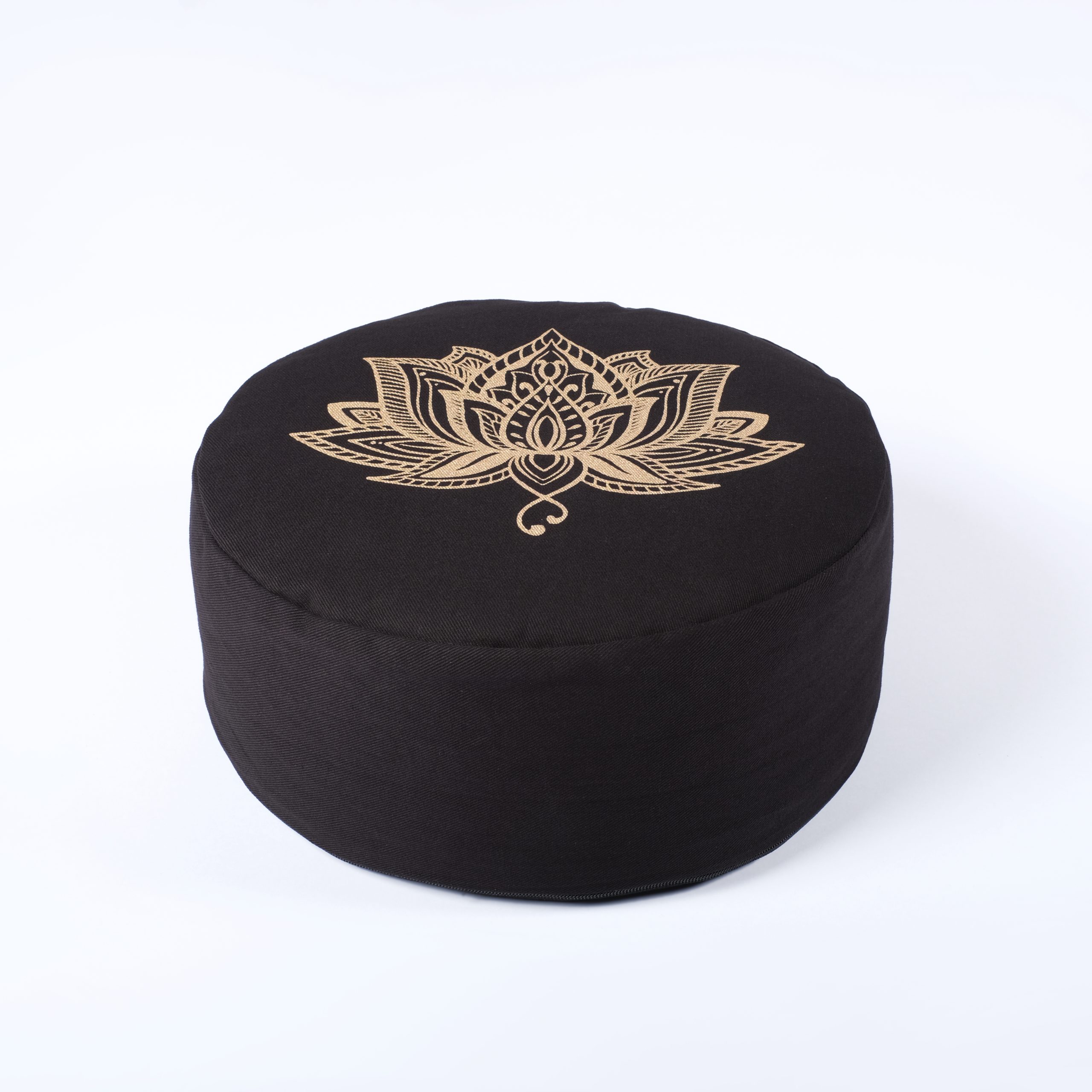 Avec son imprimé artisanal doré (Lotus, Fleur de vie ou Om) et son garnissage d’épeautre bio suisse, le Gold Print allie confort, soutien et inspiration.