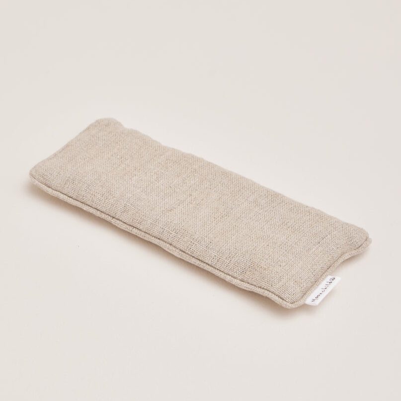 Housse de coussin pour les yeux : 50% chanvre, 50% coton biologique Rembourrage : 100% graines de lin naturelles, parfumées à la lavande