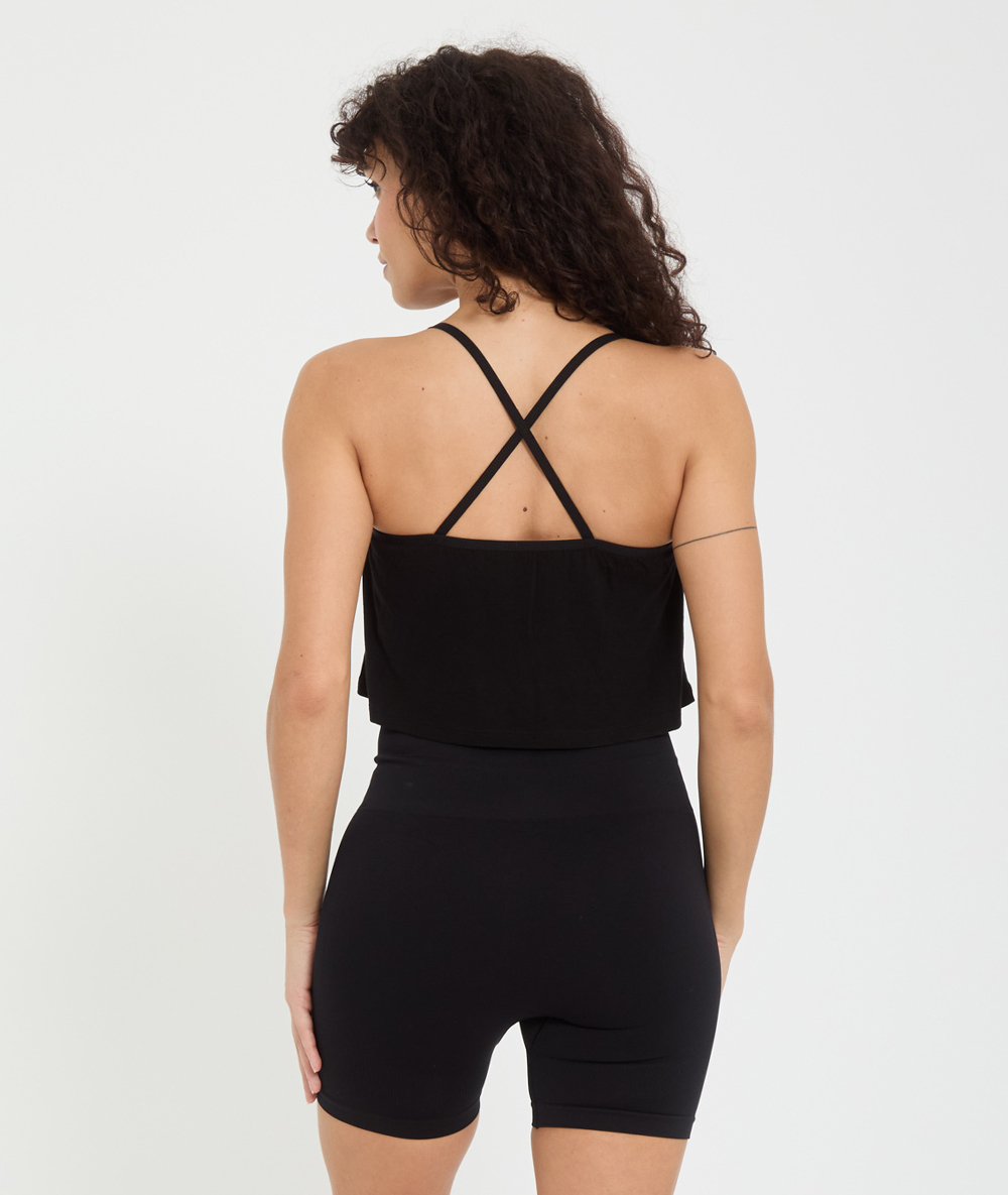 Son design minimaliste est rehaussé par des bretelles croisées dans le dos qui mettent en valeur la silhouette. Conçu en fibre de bambou, il offre une douceur incomparable et des propriétés thermorégulatrices : frais en été, chaud en hiver. Son tissu respirant favorise l’évacuation de l’humidité et garantit confort et liberté de mouvement.