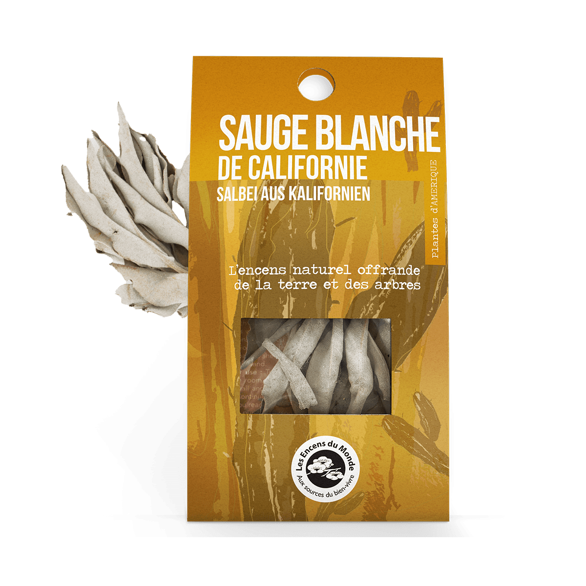 Paquet de rameaux de sauge blanche séchée de Californie, idéale pour purifier vos espaces et instaurer un climat de sérénité.