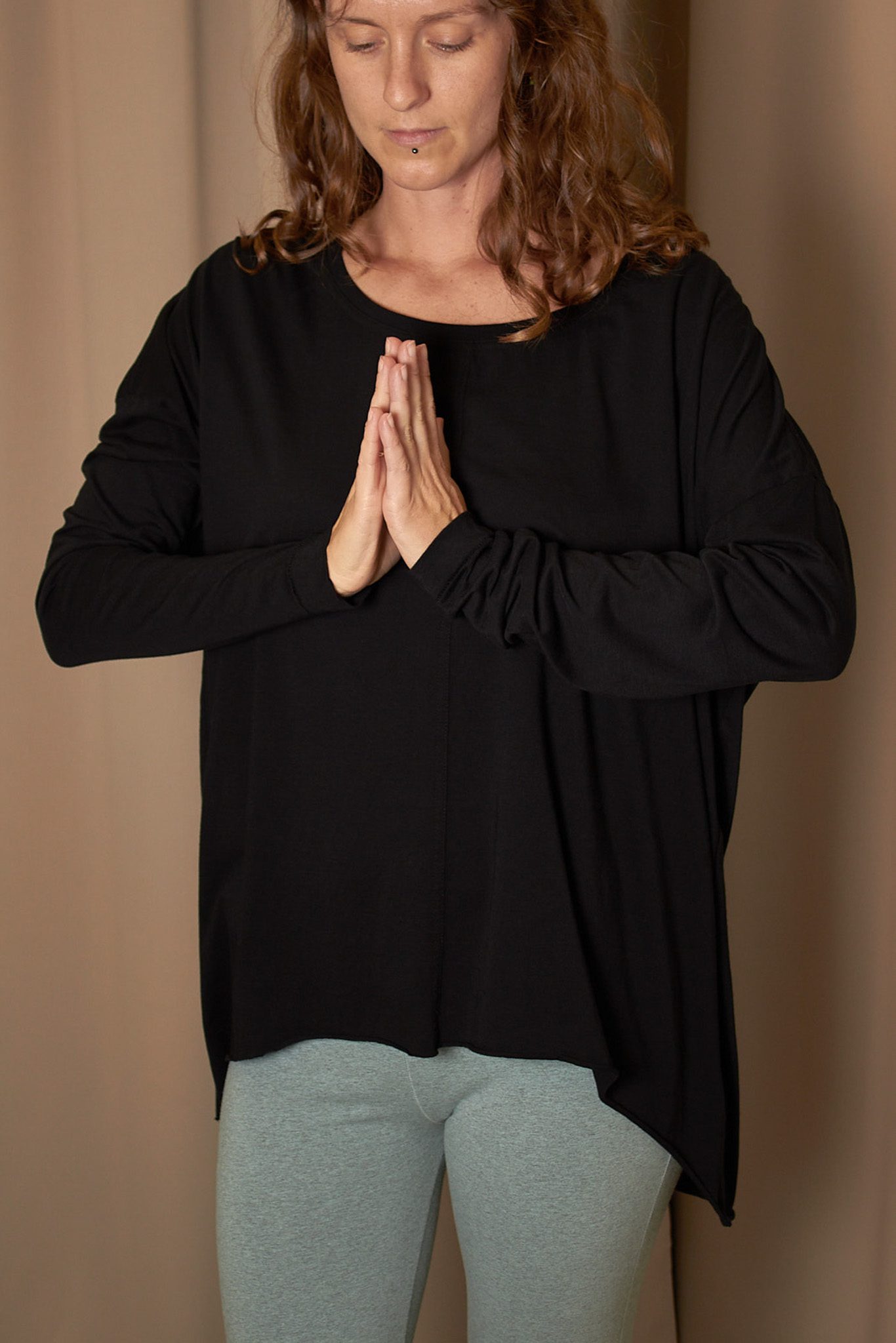 Sa douceur et sa fluidité en font un essentiel confortable, facile à porter avant, pendant ou après votre pratique.