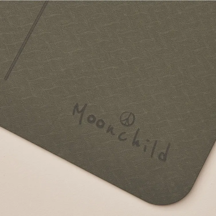 Le tapis de yoga Moonchild Active (5 mm, 1 kg) est léger, confortable et antidérapant, en TPE recyclable, avec un design phases de lune élégant : parfait pour yoga, pilates et sport.