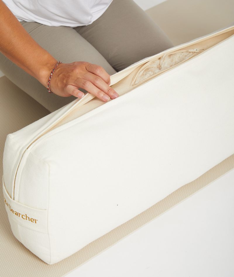 Le bolster Yantra en coton bio, garni de kapok naturel et déhoussable, offre confort et soutien durable pour vos séances de yoga, méditation et relaxation.