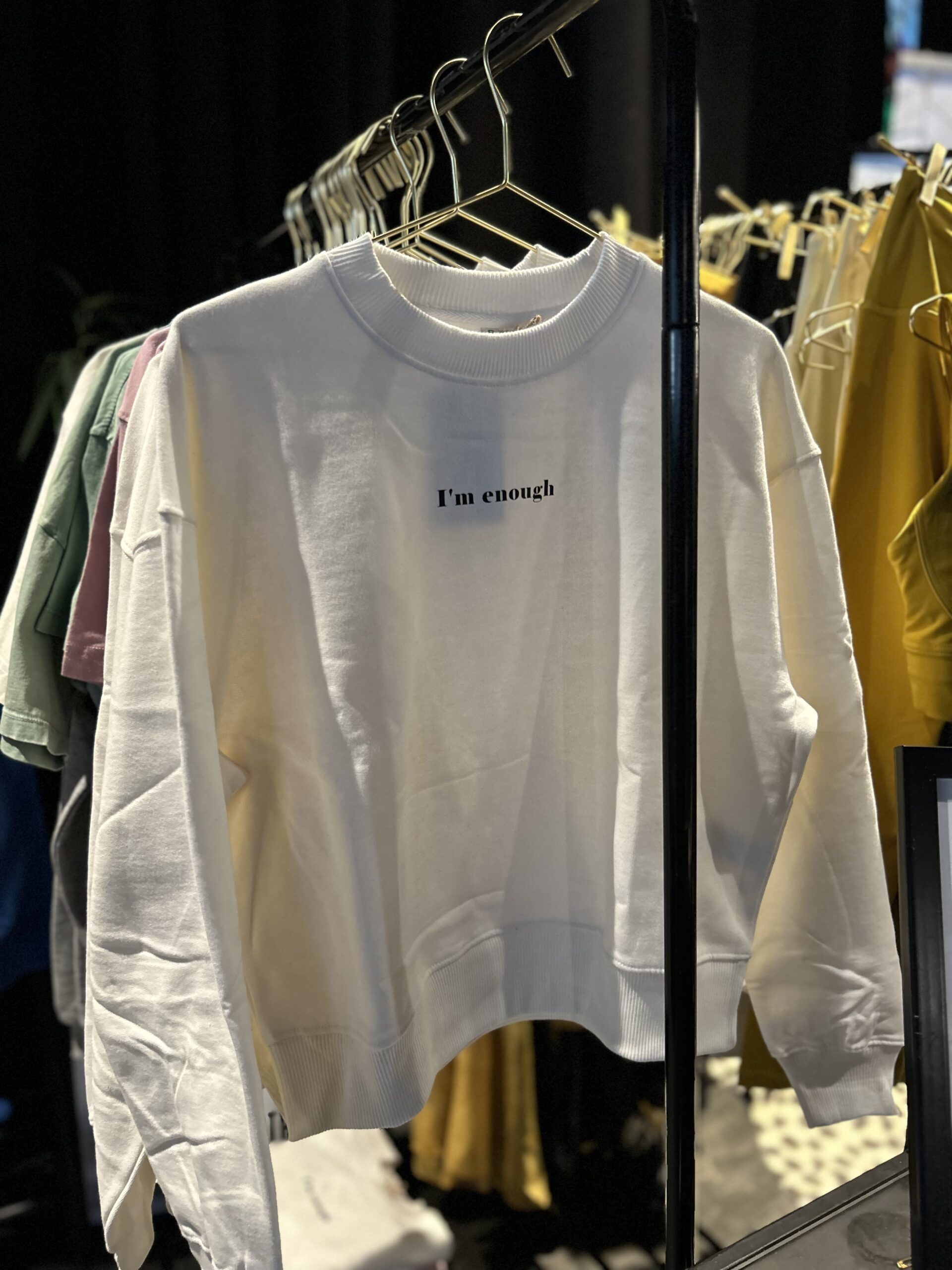 Douceur, confort et affirmation : ce sweat en coton bio nous enveloppe et rappelle avec simplicité qu’on est toujours “assez”.