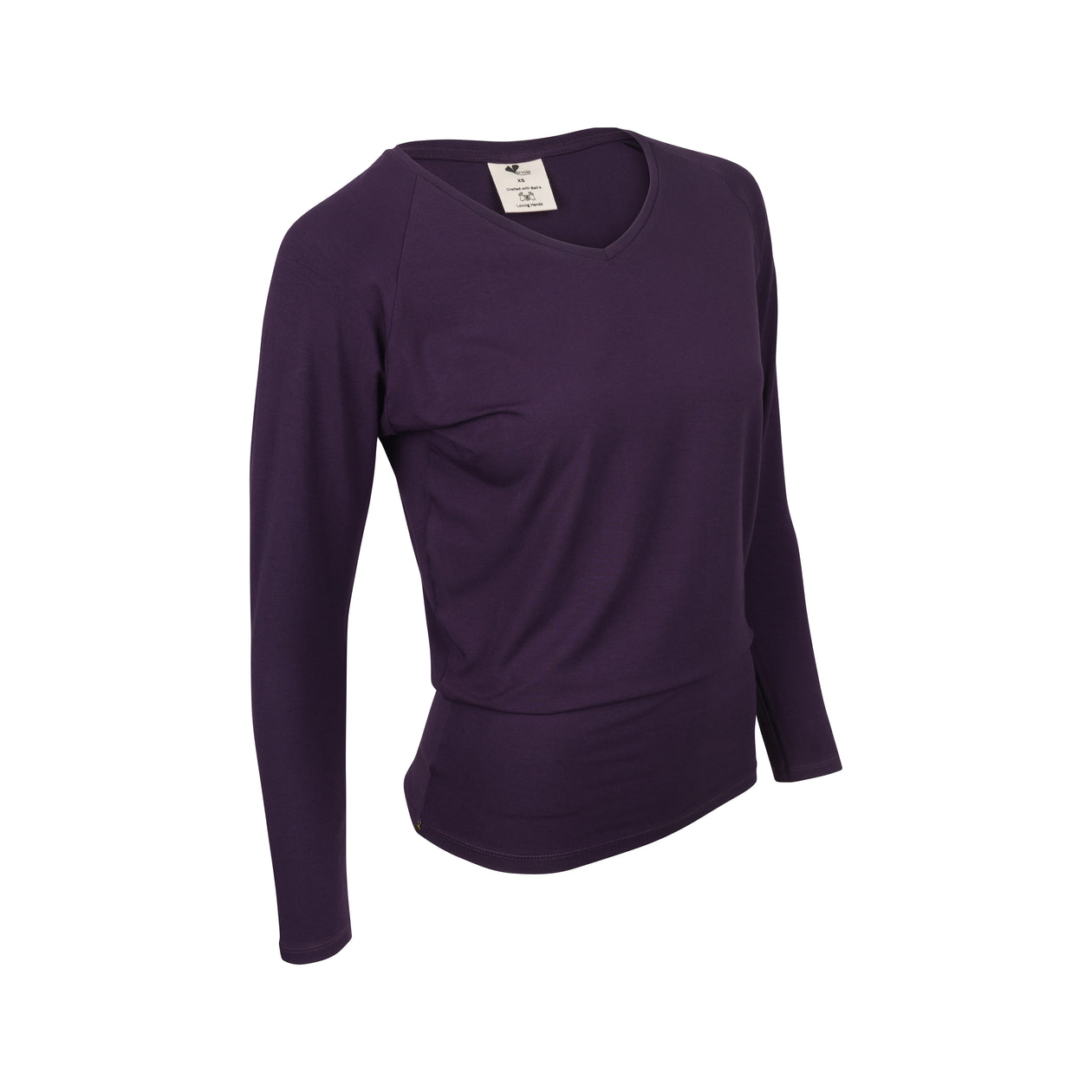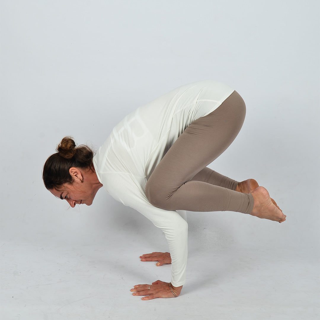 T-shirt de yoga manches longues en Tencel, coupe fluide ajustée aux hanches pour confort, douceur et maintien optimal pendant la pratique.